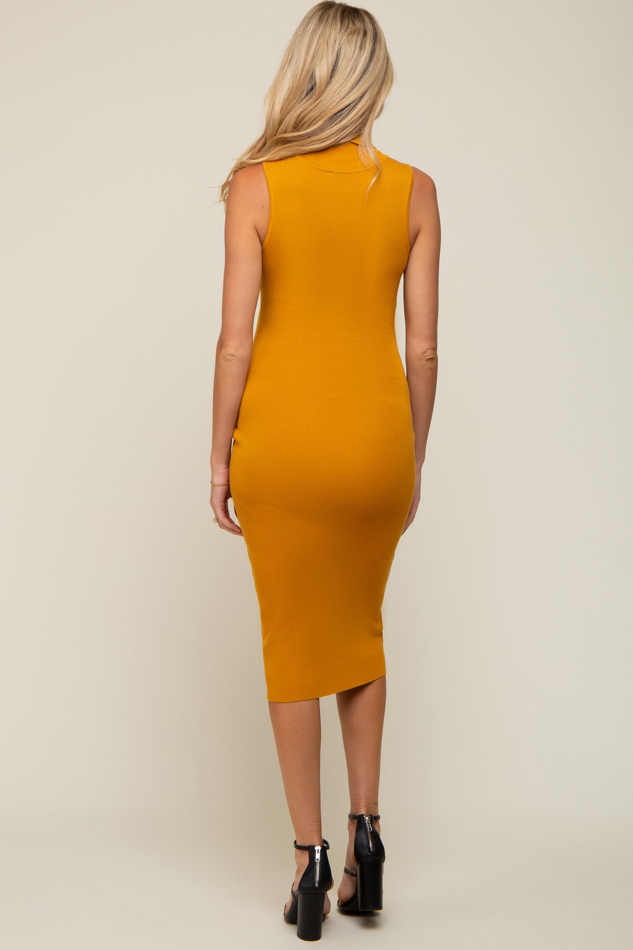 Mustard Knit Fitted Turtleneck Maternity Midi Dress
