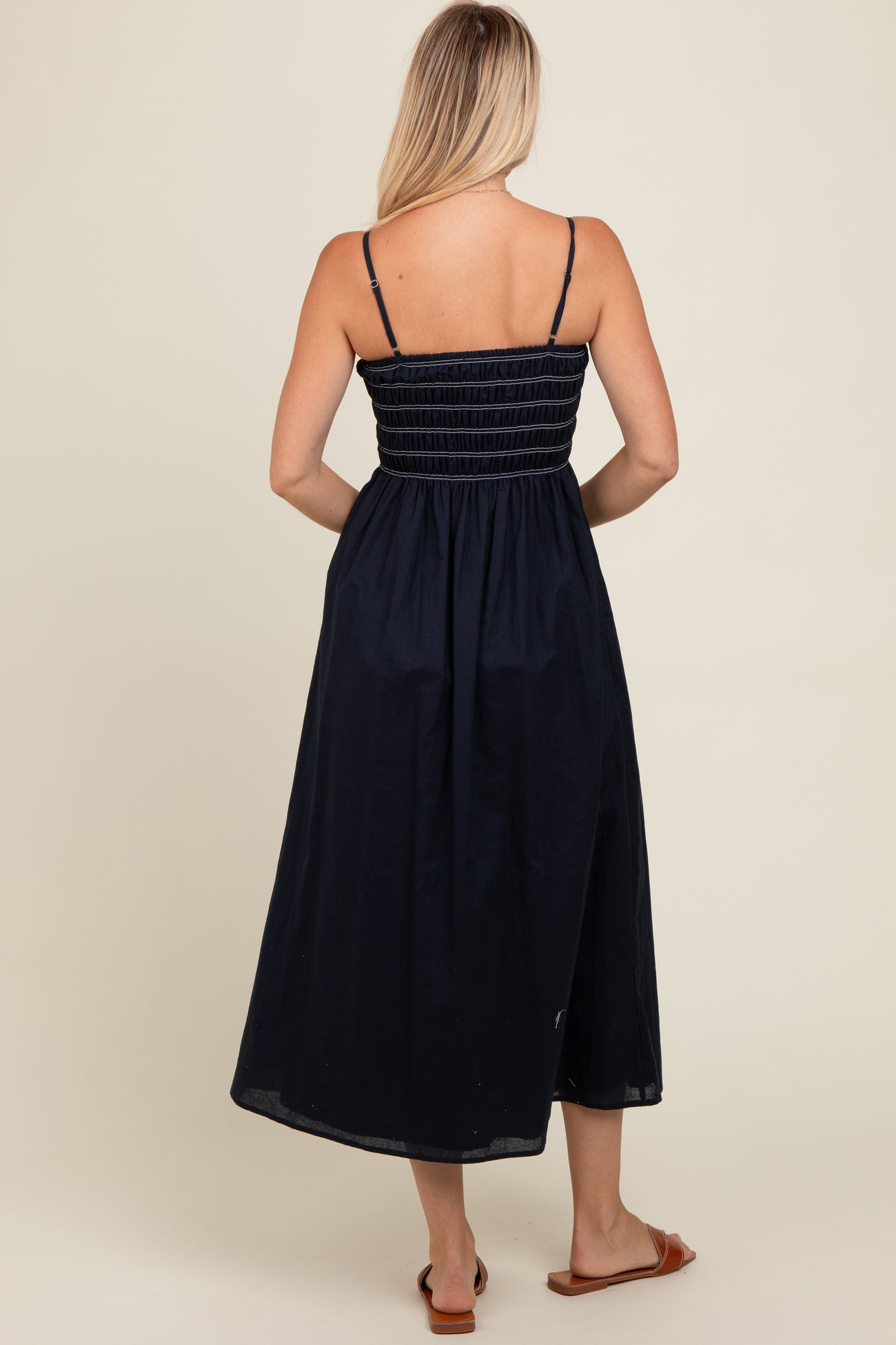 Navy Bartlett Striped Smocked Midi Dress