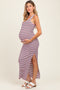 Navy Black Striped Side Slit Maternity Maxi Dress