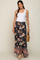 Navy Blue Floral Border Print Smocked Waist Button Front Maternity Maxi Skirt