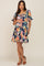 Navy Blue Floral Square Ruffle Neck Tiered Short Sleeve Maternity Dress