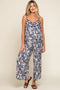 Navy Blue Floral Wide Leg Crop Jumpsuit
