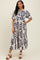 Navy Blue Leaf Print Scallop Trim Midi Shirt Dress