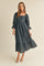Navy Blue Metallic Jacquard Floral Midi Dress