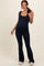 Navy Blue Open Back Ruched Sleeveless Maternity Jumpsuit