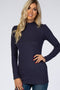 Navy Blue Ribbed Long Sleeve Mock Neck Maternity Top