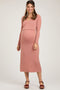 A ribbed maternity one piece swimsuit featuring a v-neckline, ruched sides, metal o-rings, adjustable straps that cross in the back, a low back and removeable padding at the bust.