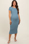 A knee-length dress with a v-neckline, short cuffed dolman sleeves, a curved hi-lo hem, and side slits.