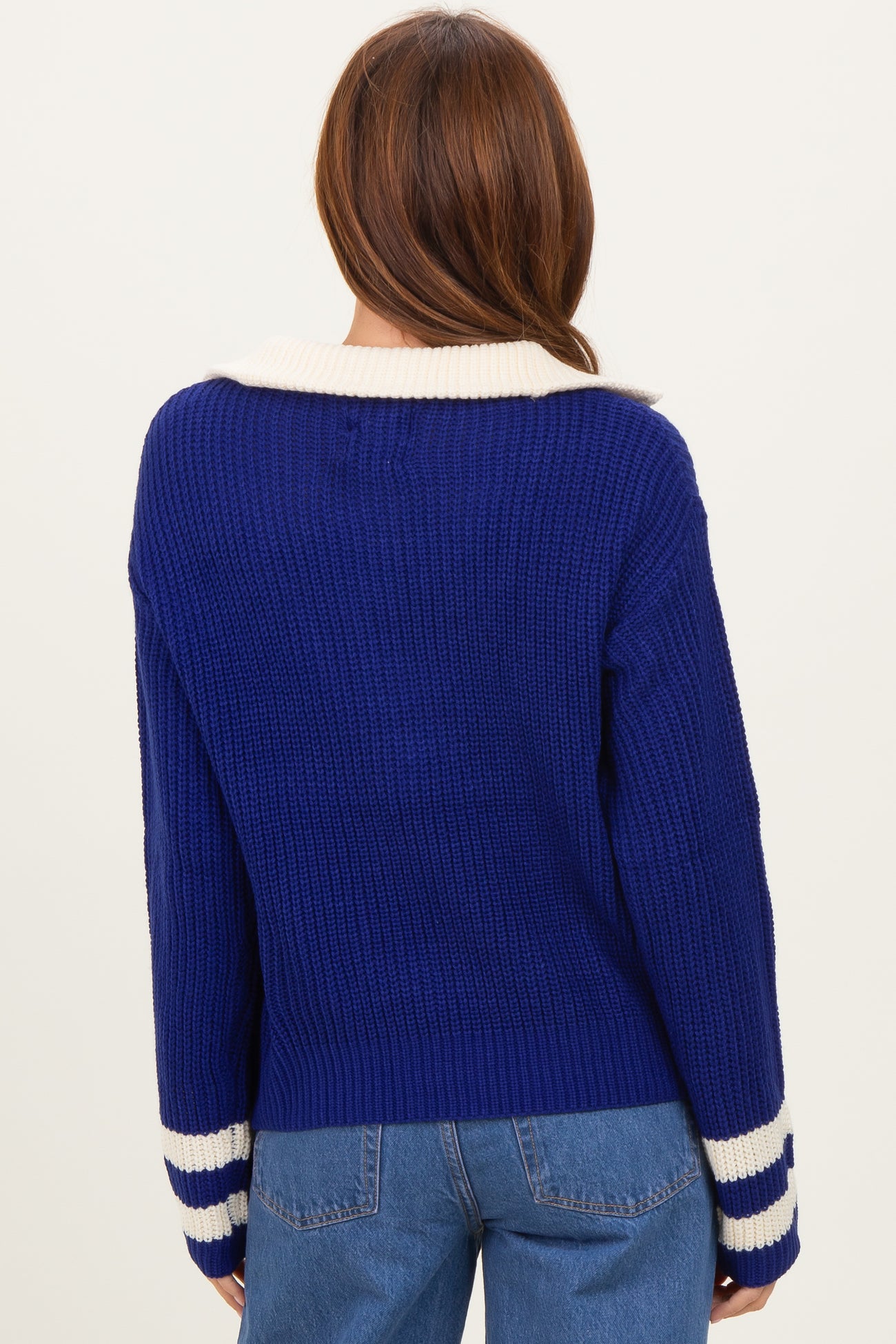 Navy Colorblock Chunky Knit Half Zip Sweater