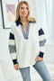 Navy Colorblock Stripe Collared Maternity Sweater
