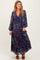Navy Floral Chiffon V-Neck Long Sleeve Maternity Maxi Dress