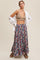 A floral midi skirt featuring a back elastic waistband, side pockets, and a tiered hem. Skirt is partially lined.