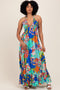 Navy Gingham Smocked Puff Sleeve Maternity Midi Dress