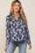 Navy Leaf Print Satin Button Up Maternity Blouse