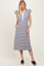 Navy Multi-Striped Button Up Ruffle Sleeve Midi Dress