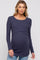 A solid brushed knit rib maternity long sleeve top with a layered crossover top for nursing access.