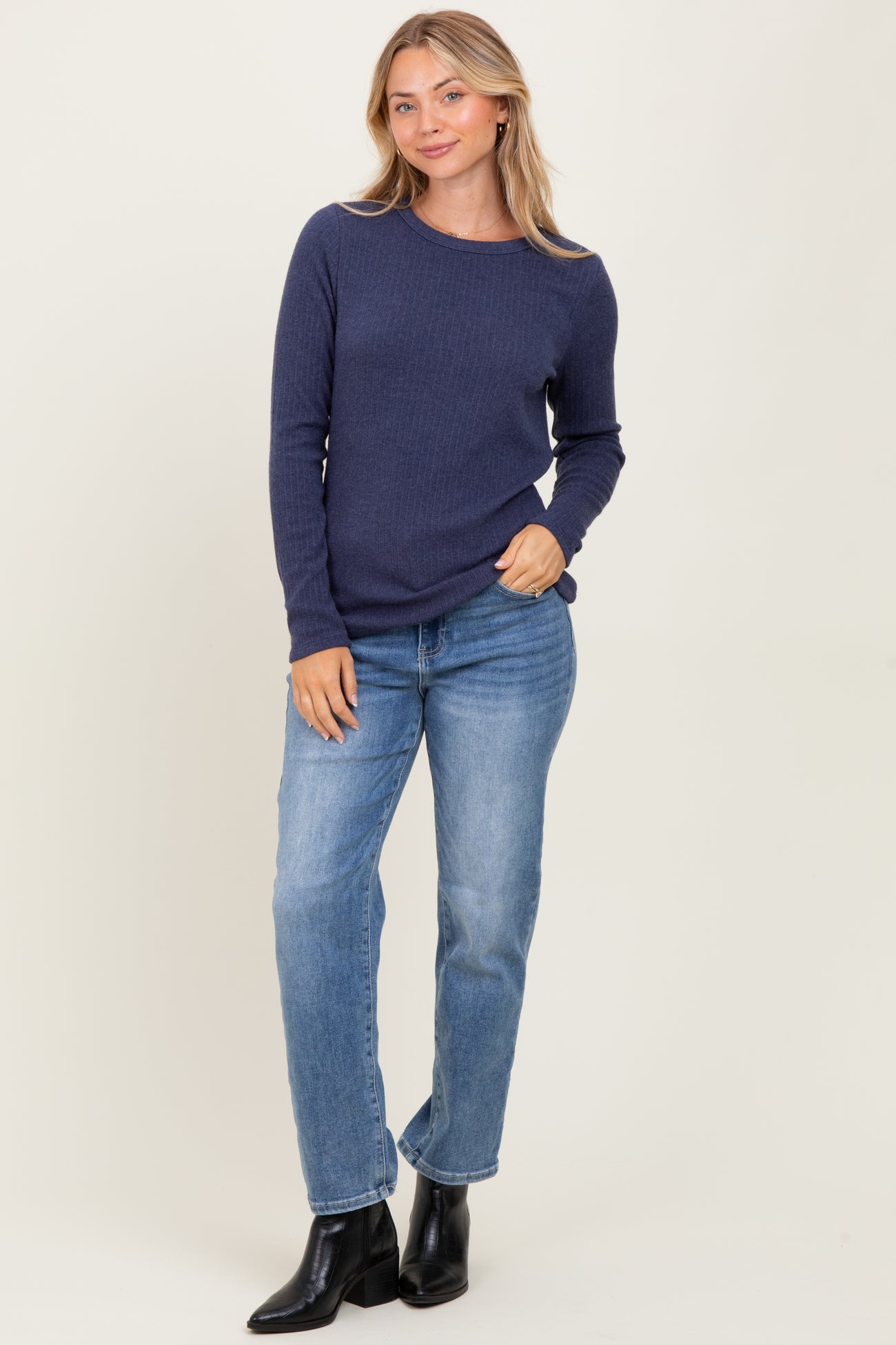 Stay cozy and chic with our Navy Ribbed Knit Long Sleeve Top. Crafted from a soft, stretchy fabric, this fitted top features a classic crew neckline and subtle ribbed texture for a flattering silhouette. Perfect for layering or worn solo, it pairs effortlessly with jeans or skirts for both casual and polished looks. The rich navy hue adds a timeless touch to your wardrobe, making it a versatile staple for any season. Easy to dress up or down, this long sleeve knit promises comfort without compromising style. Available in a range of sizes to suit your perfect fit.
