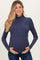 Navy Ribbed Mock Neck Ruffle Hem Maternity Long Sleeve Top
