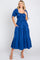 Navy Shirred Front Tie Short Sleeve Tiered Midi Dress