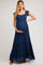 Navy Smocked Crossover Off Shoulder Maternity Maxi Dress