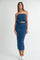 Navy Strapless Ribbed Knit Peplum Top Midi Skirt Set