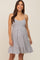 A striped maternity dress with adjustable straps, a scoop neckline, and a gathered bottom tier.