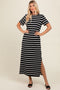Effortlessly chic and comfortable, this striped maxi dress is perfect for casual outings or relaxed weekends. Featuring a classic crew neckline and short sleeves, it offers a flattering, laid-back fit that drapes beautifully. The side slit adds a subtle touch of allure and ease of movement, making it ideal for warm days. Crafted from soft, breathable fabric, this dress ensures all-day comfort while keeping your look stylish and fresh. Pair it with sandals or slides for an easygoing vibe or dress it up with your favorite accessories for a more polished ensemble. A versatile wardrobe staple you'll reach for again and again.