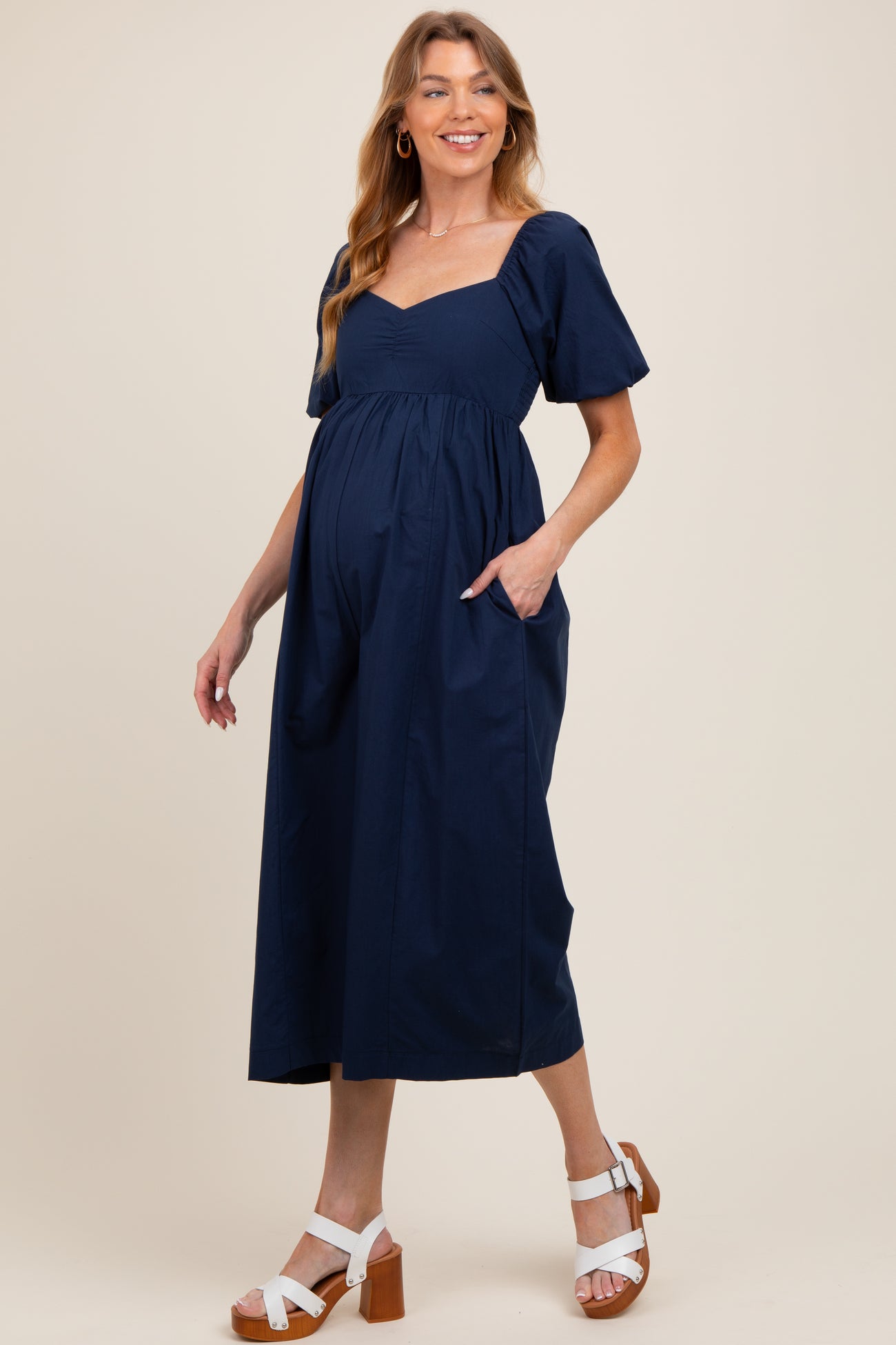 Navy Sweetheart Cropped Wide Leg Maternity Jumpsuit