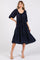 A solid hued midi dress featuring short sleeves, a tiered body and a self-tie neckline.