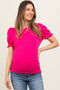 A solid hued maternity top featuring a v-neckline and short sleeves.