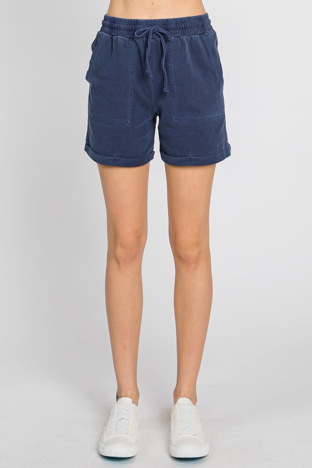 Navy Washed Cuffed Pocketed Shorts