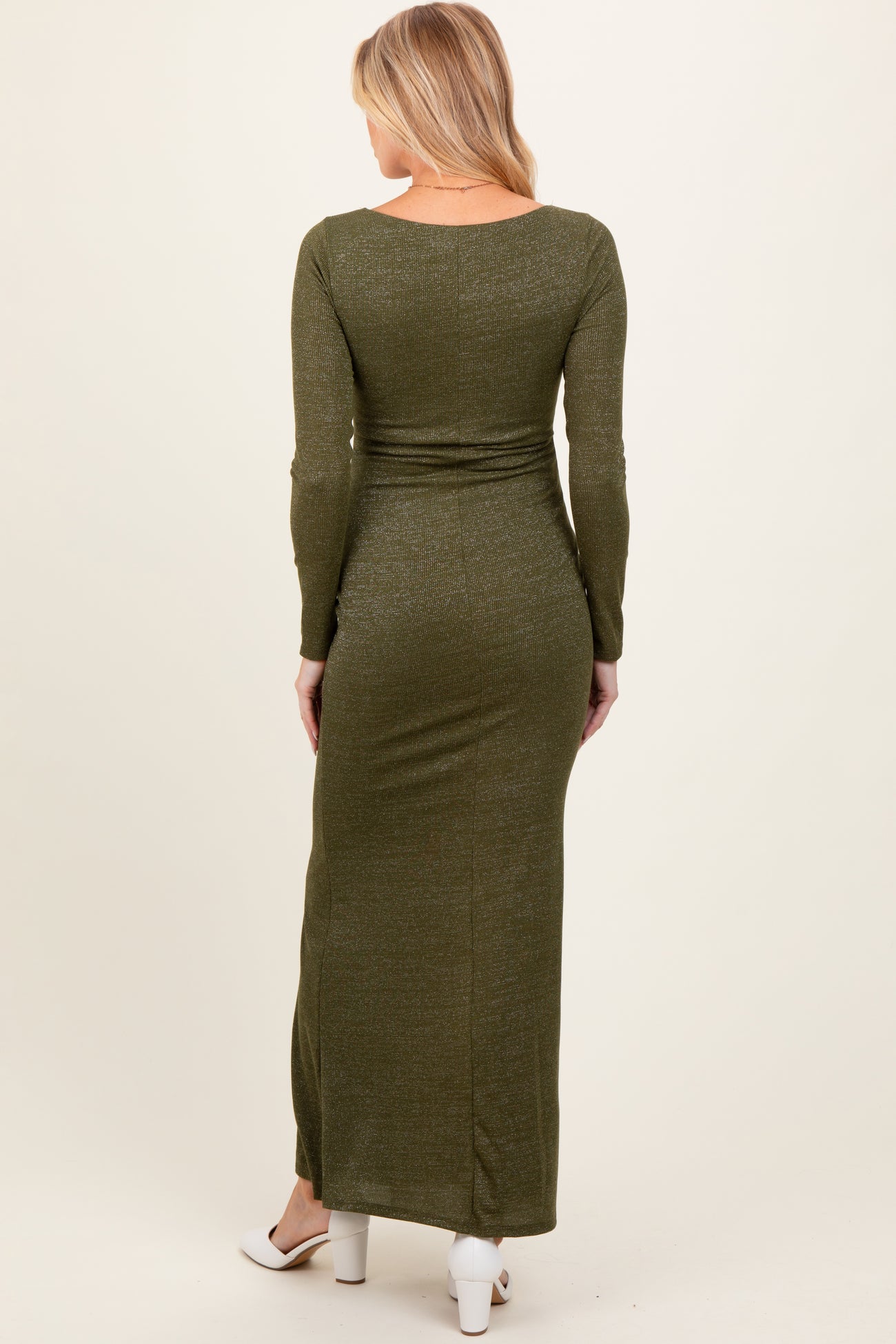 Olive Basic Square Neck Long Sleeve Maternity Maxi Dress