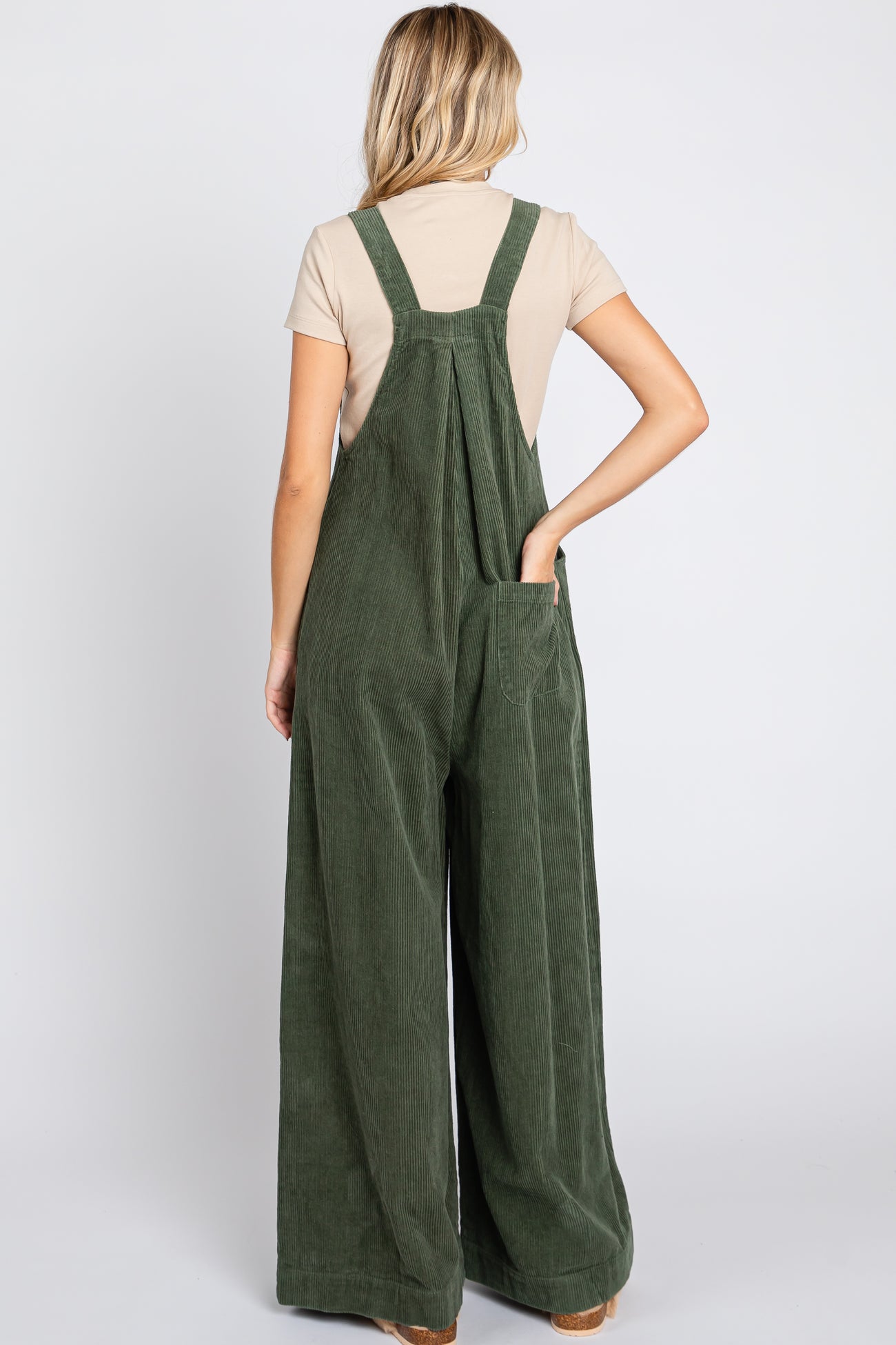 Olive Corduroy Front Pleated Wide Leg Overalls