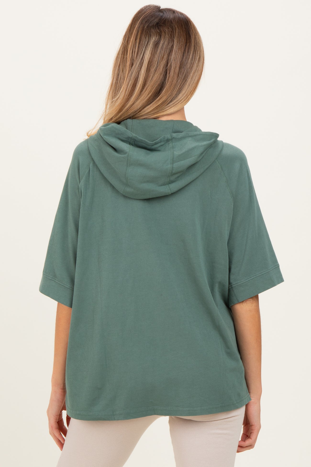 Stay comfortable and stylish with our Olive Hooded Short Sleeve Maternity Top. Crafted from soft, breathable fabric, this top features a relaxed fit that gently accommodates your growing bump. The olive green hue adds a chic, versatile touch to your maternity wardrobe, while the short sleeves and hood provide a casual, laid-back vibe. Perfect for everyday wear, this top pairs easily with leggings or jeans for a cozy yet fashionable look. Whether you're running errands or lounging at home, enjoy all-day comfort without compromising style. Your go-to maternity essential!