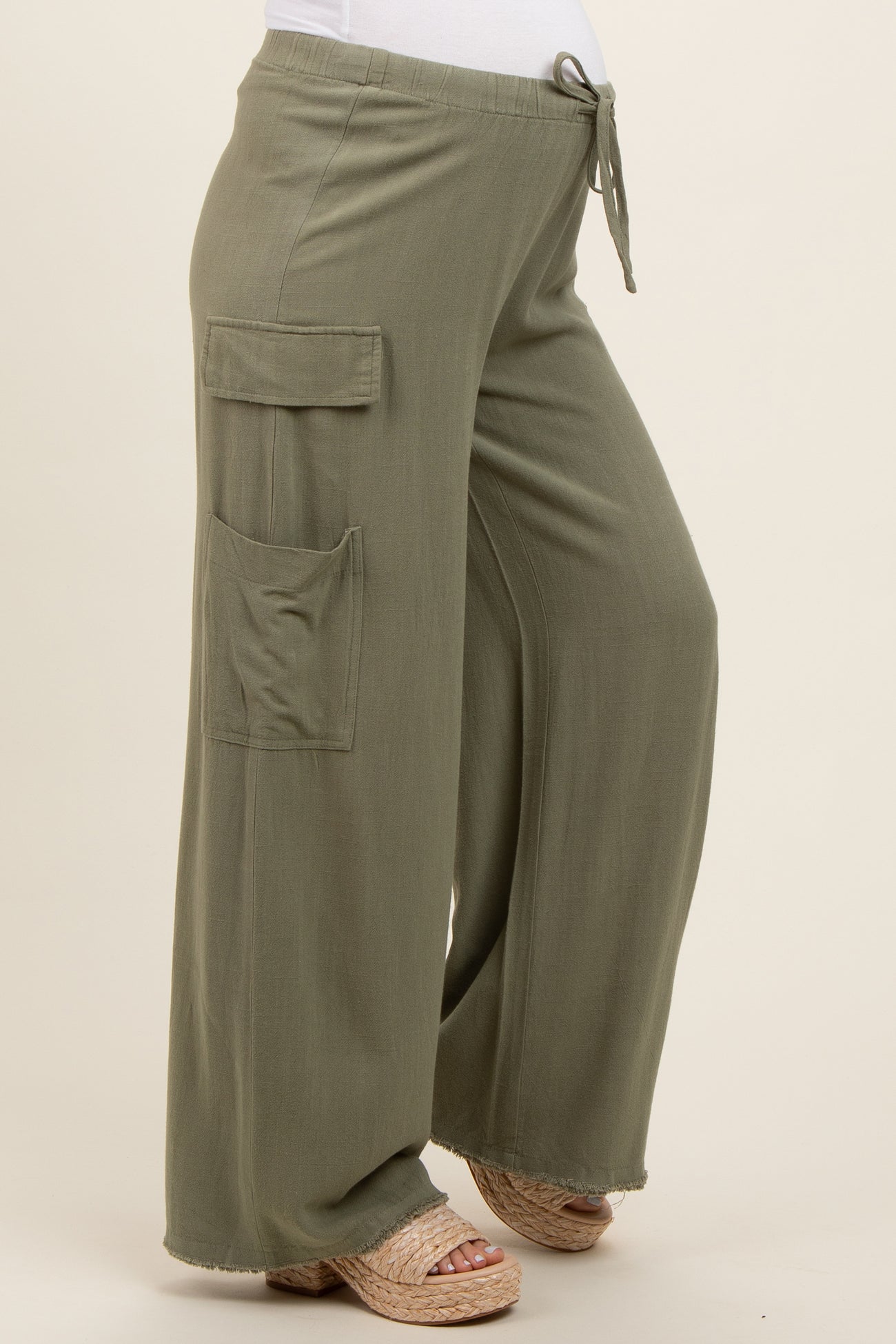 Details A pair of maternity pants featuring four side pockets and an adjustable drawstring waist. Content + Care