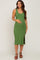 Olive Ribbed Back Cutout Maternity Midi Dress