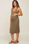 A fitted ribbed midi dress featuring a rounded neckline and a button front.