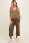 Olive Ribbed Button Front Sleeveless Plus Maternity Jumpsuit