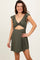 Olive Ribbed Ruffle Twist Front Swim Dress