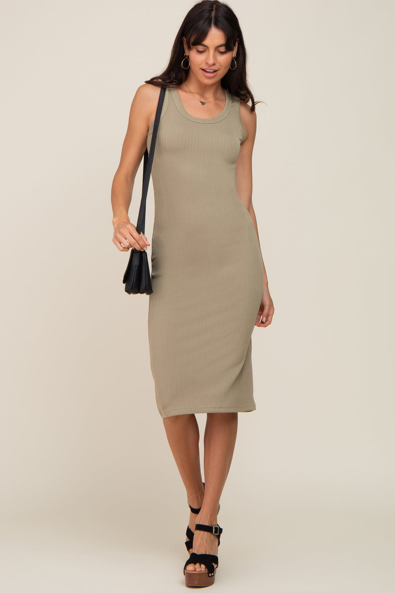 Olive Ribbed Sleeveless Fitted Maternity Dress