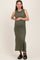 Olive Ribbed Sleeveless Side Slit Maternity Midi Dress