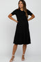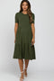 A solid ribbed short sleeve dress with scoop neckline and tiered body.
