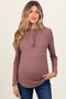 Olive Ruffle Collar Micro Waffle Knit Maternity Henley Top