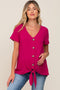 Olive Satin Button Down Smocked Accent Top