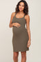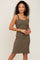 A solid hued ribbed sleeveless dress. Rounded neckline.