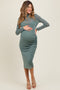 Olive Sleeveless Ribbed Knit Maternity Midi Dress