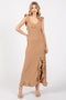 A sleeveless textured maternity dress featuring side pockets, a rounded neckline and a back keyhole cutout with a button closure.