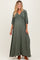 Olive Solid 3/4 Sleeve Smocked Top V-Neck Maternity Maxi Dress