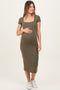 Step into effortless style with our Olive Square Neck Basic Midi Dress. Designed with a flattering square neckline and short sleeves, this chic midi dress hugs your silhouette for a sleek, contemporary look. The soft, stretchy fabric ensures all-day comfort while the olive hue adds a touch of earthy elegance perfect for any season. Whether paired with flats for a casual day out or dressed up with heels and accessories for a night on the town, this versatile dress is a wardrobe essential. Elevate your basics with timeless sophistication. Perfect fit, endless possibilities.