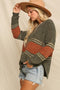 Olive Striped Button Front Collared Long Sleeve Maternity Top
